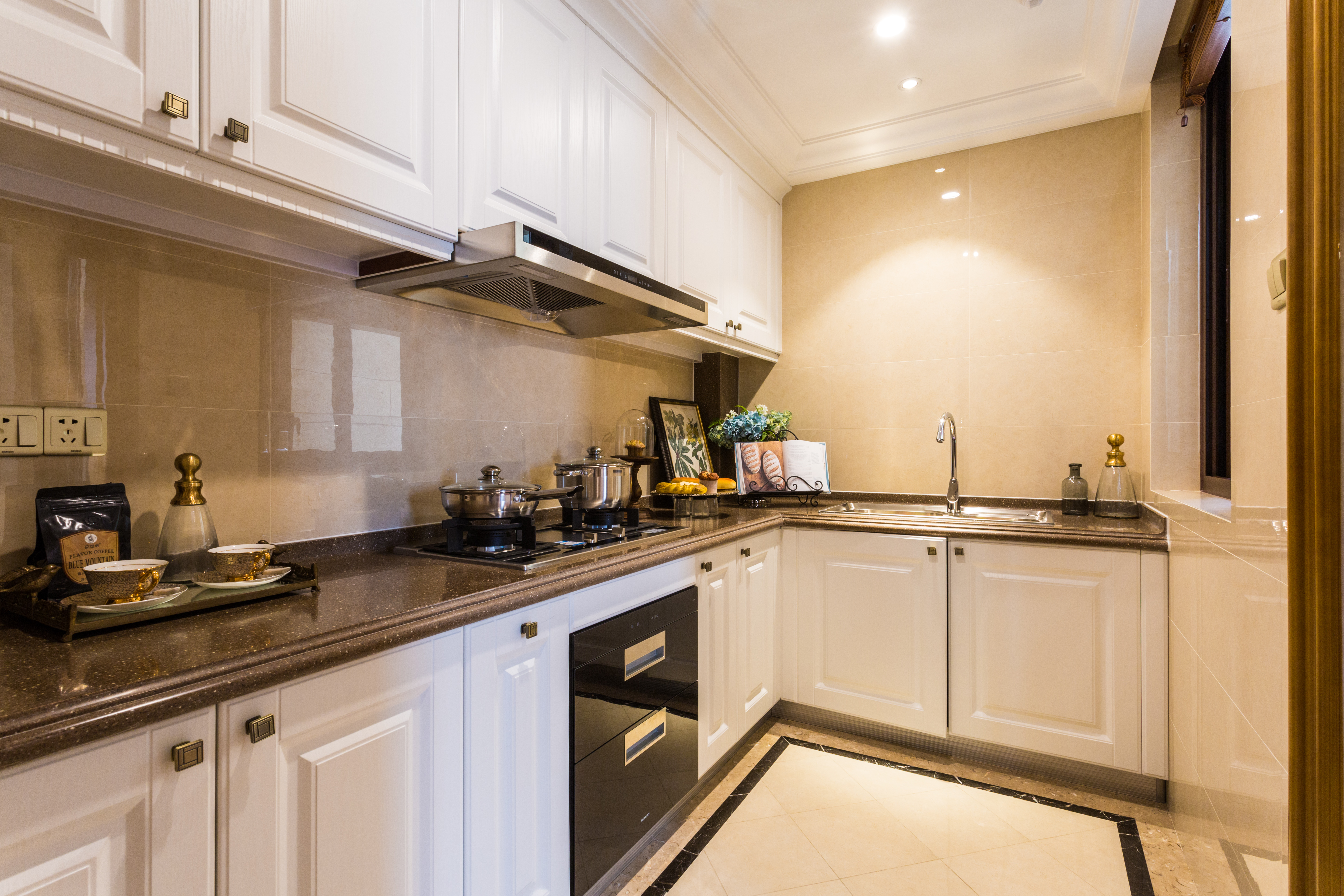 3、前期的測(cè)量,不僅是為了讓櫥柜與廚房天衣無縫,還需要設(shè)計(jì)好各電器插座的合理位置。廚房里通常有的電器包括:冰箱、微波爐、電飯鍋、油煙機(jī)、消毒柜、洗碗機(jī)等,應(yīng)根據(jù)各自的功率,分別安裝插座,避免一個(gè)接線板同時(shí)接好幾個(gè)大功率電器的情況,保證安全。另外,插座均需安裝漏電保護(hù)裝置。細(xì)節(jié)沒有計(jì)算好的話,后面需要付出很大的代價(jià)。