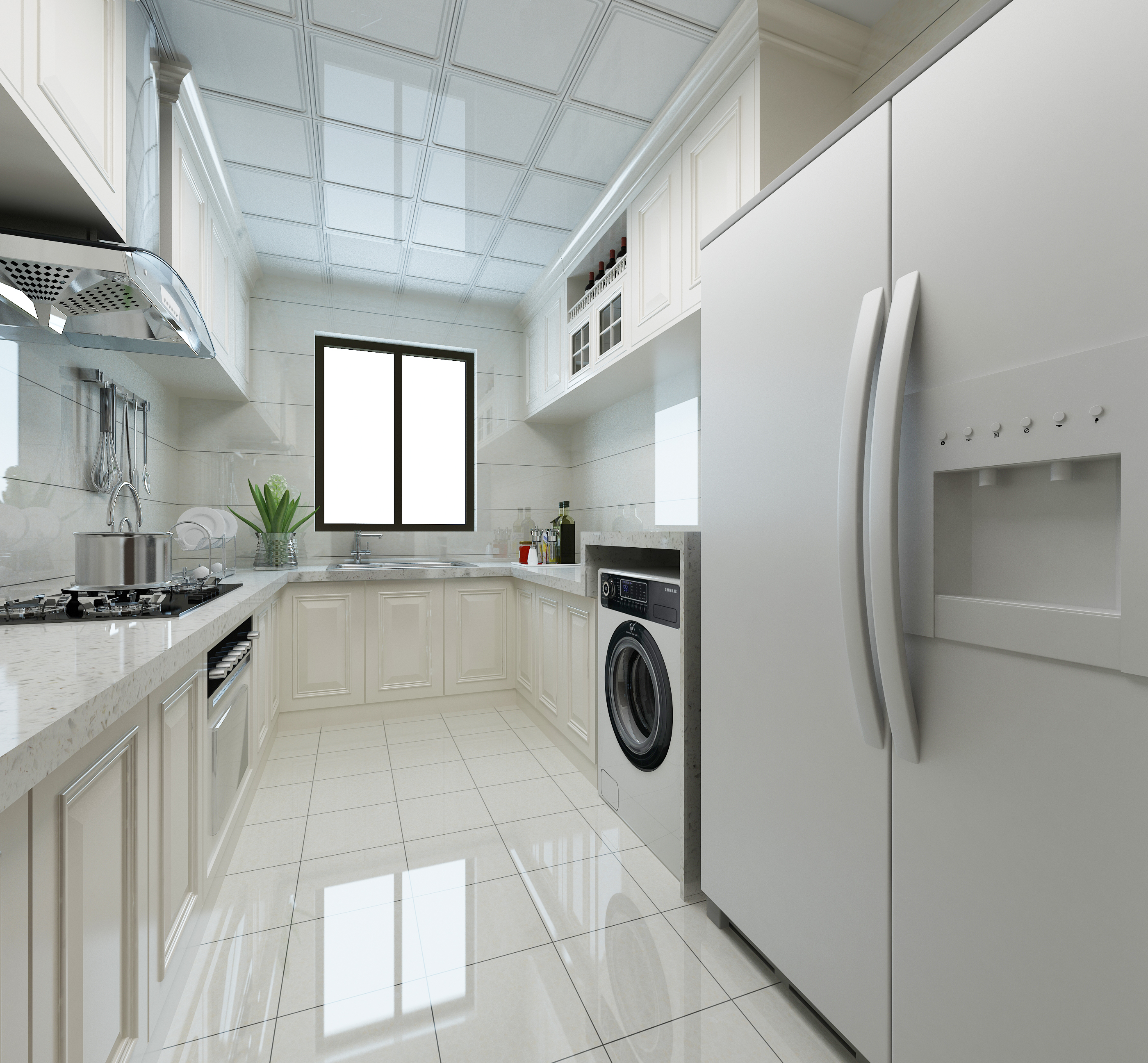4、看看空間是否足夠,這個空間是否有冰箱的空間,通常冰箱在廚房餐廳,根據(jù)自己的空間大小,如果餐廳的空間不大,你就放一個從右到左的門,連用餐的位置都沒有。
