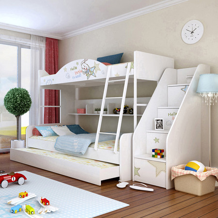 1.節(jié)約空間同樣的空間,單層床只能供一個人使用,而雙層床能供兩個人使用。對于那些家居面積狹小的家庭來說,雙層床絕對是最好的選擇。雙層床的節(jié)約空間不僅體現(xiàn)在使用人數(shù)上,還體現(xiàn)在其配套設施上。